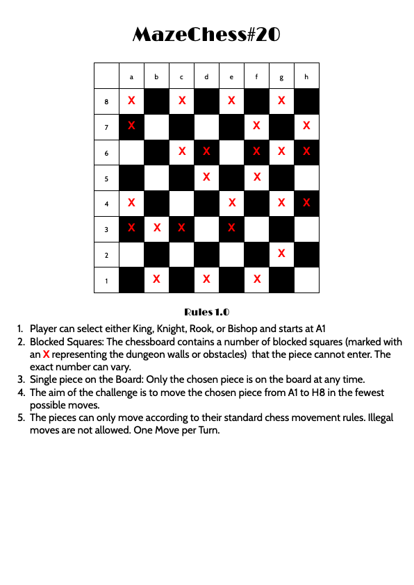 For yesterdays mazechess challenge all pieces could complete and Bisho was fastest in 5 moves so well done to all those who picked the Bishop. For more mazechess stuff check out mazechess.com