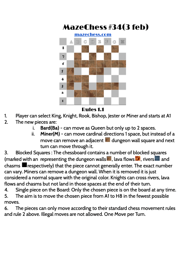 For yesterdays mazechess challenge Miner, Jester and King can complete and Jester was fastest in 6 moves so well done to all those who picked the Jester. Here’s the challenge for today.