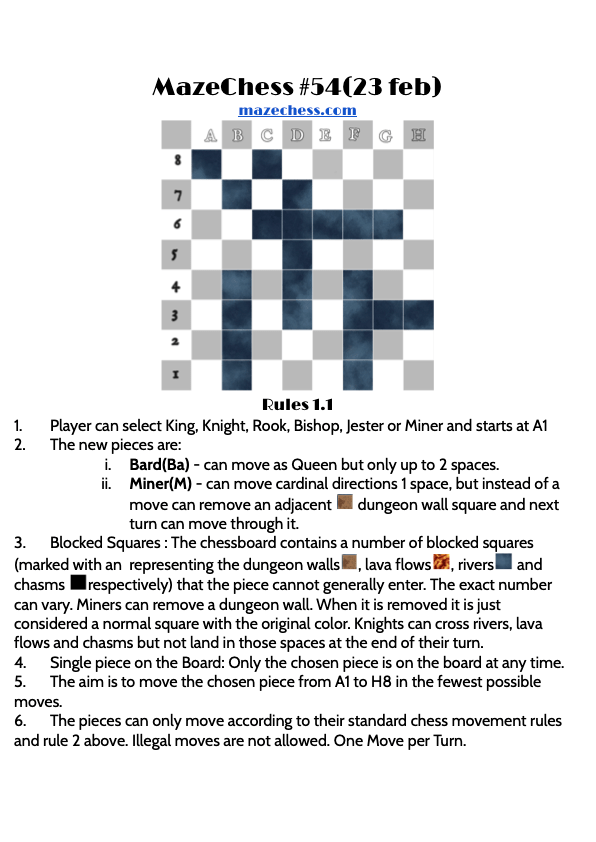 For yesterdays mazechess challenge Rook can complete the challenge in 7 moves. Here’s todays challenge and add your comments below for who is the fastest piece?