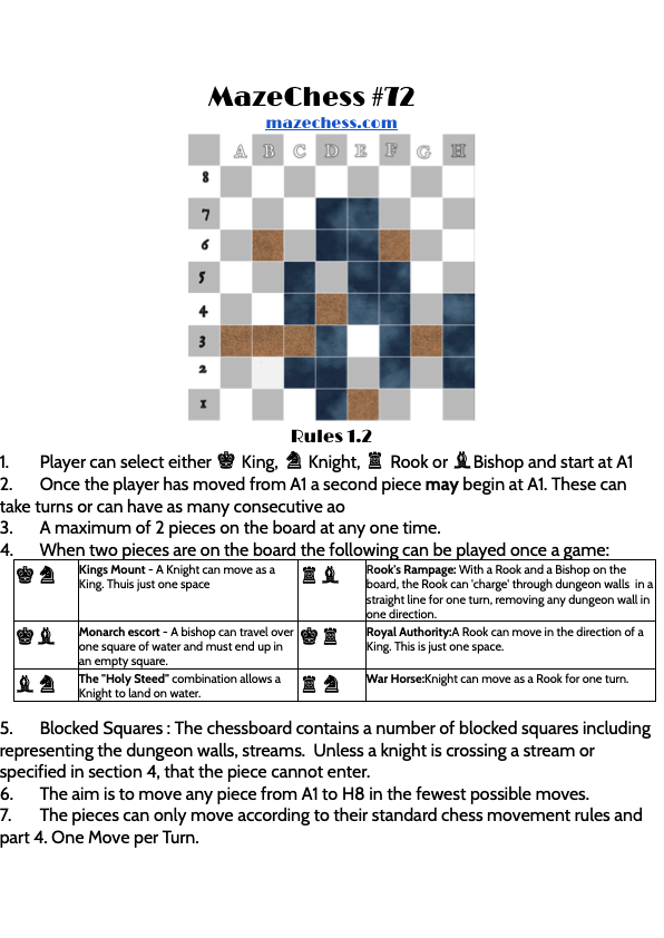 Using Mazechess v1.2 for the first time today!!!! but For Mazechess 71 of the mazechess challenge the Jester can complete the challenge in 6 moves. Here’s Mazechess 72 and add your comments below for who is the fastest piece?