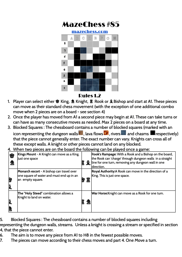 For Mazechess 84 of the mazechess challenge the Rook can complete the challenge in 9 moves. Here’s Mazechess 85 and add your comments below for who is the fastest piece?