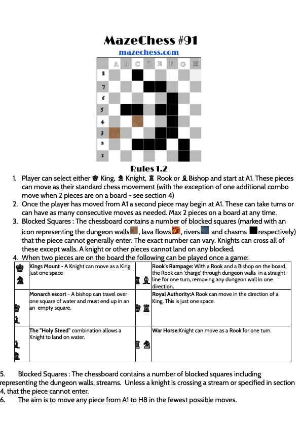 Here’s Mazechess 91 , please add your comments below for who is the fastest piece or the fastest combo?