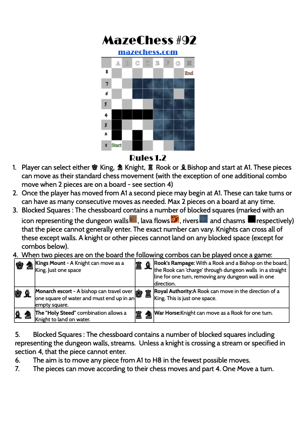 Here’s Mazechess 92 , please add your comments below for who is the fastest piece or the fastest combo?