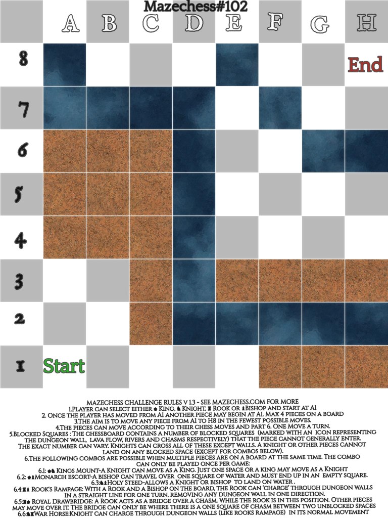 Here’s Mazechess 102 , please add your comments below for who is the fastest piece or the fastest combo?