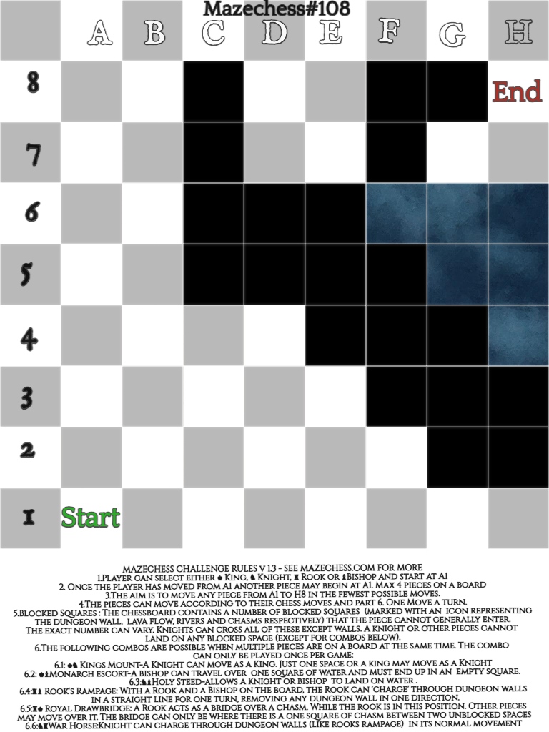 This is the solution for mazechess 108 if you can find a better solution add a comment
