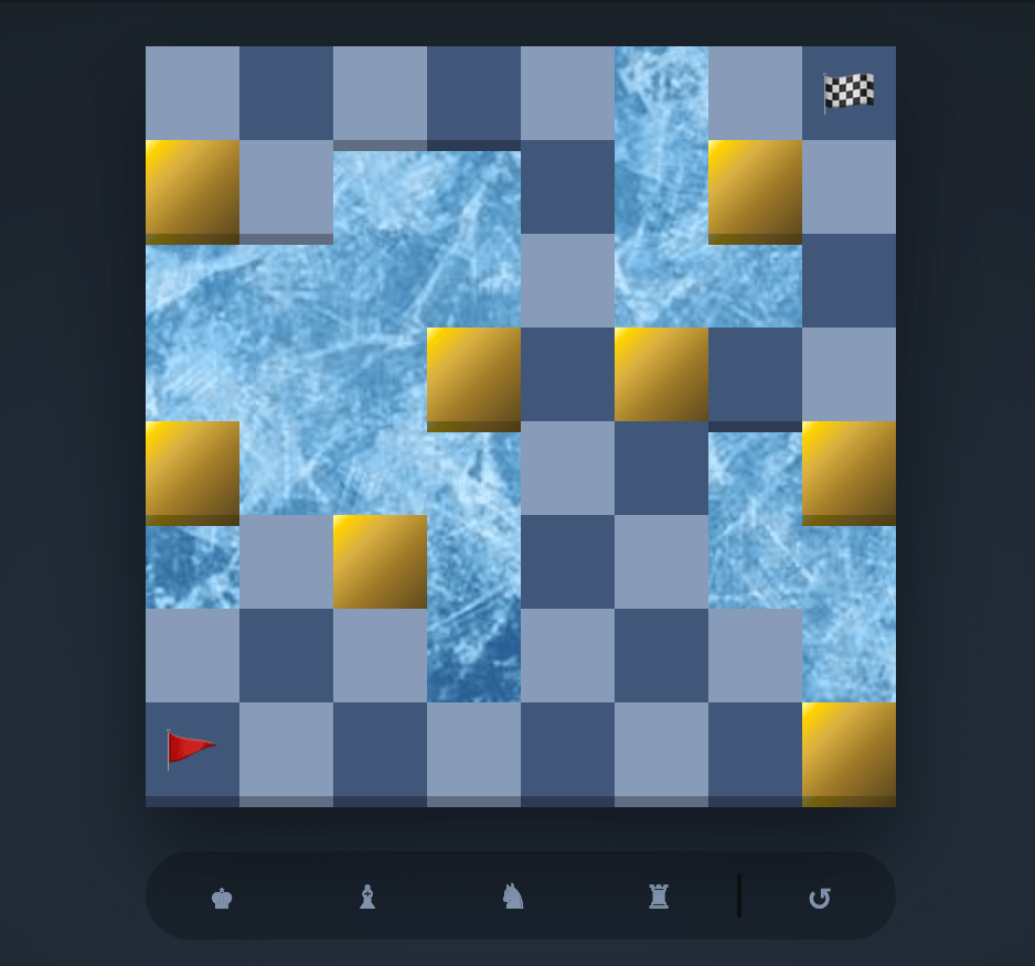 Mazechess 320 – Reminder you need to move one piece to A8 and collect all gold along the way. Please add a comment for any solutions or jump online at mazechessgame.com #dungeon24