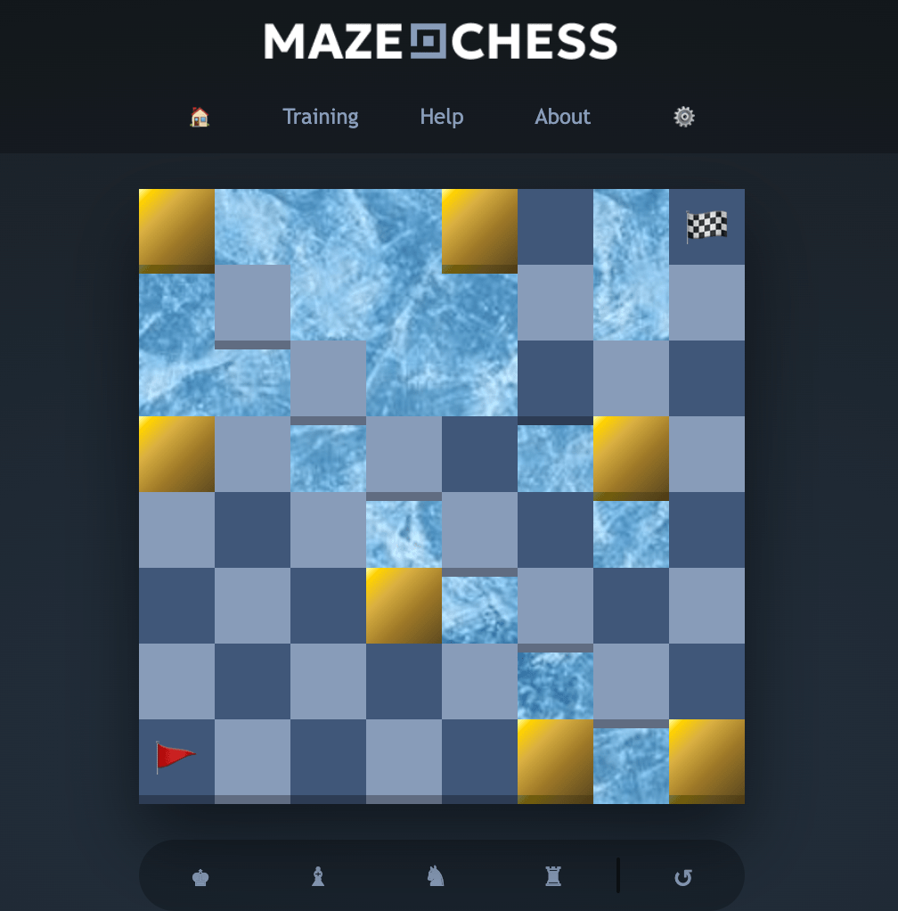 Mazechess 321 – Reminder you need to move one piece to A8 and collect all gold along the way. Please add a comment for any solutions or jump online at mazechessgame.com #dungeon24