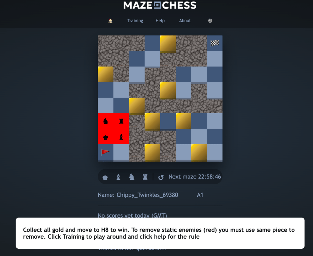 We are releasing the guards functionality tomorrow. Guards do not move and can only removed by the same piece. for example on the image here we can see that only a king could remove the king at position A2. Guards are very good at blocking a players progress in Mazechess. You do not need to remove guards to complete the game.